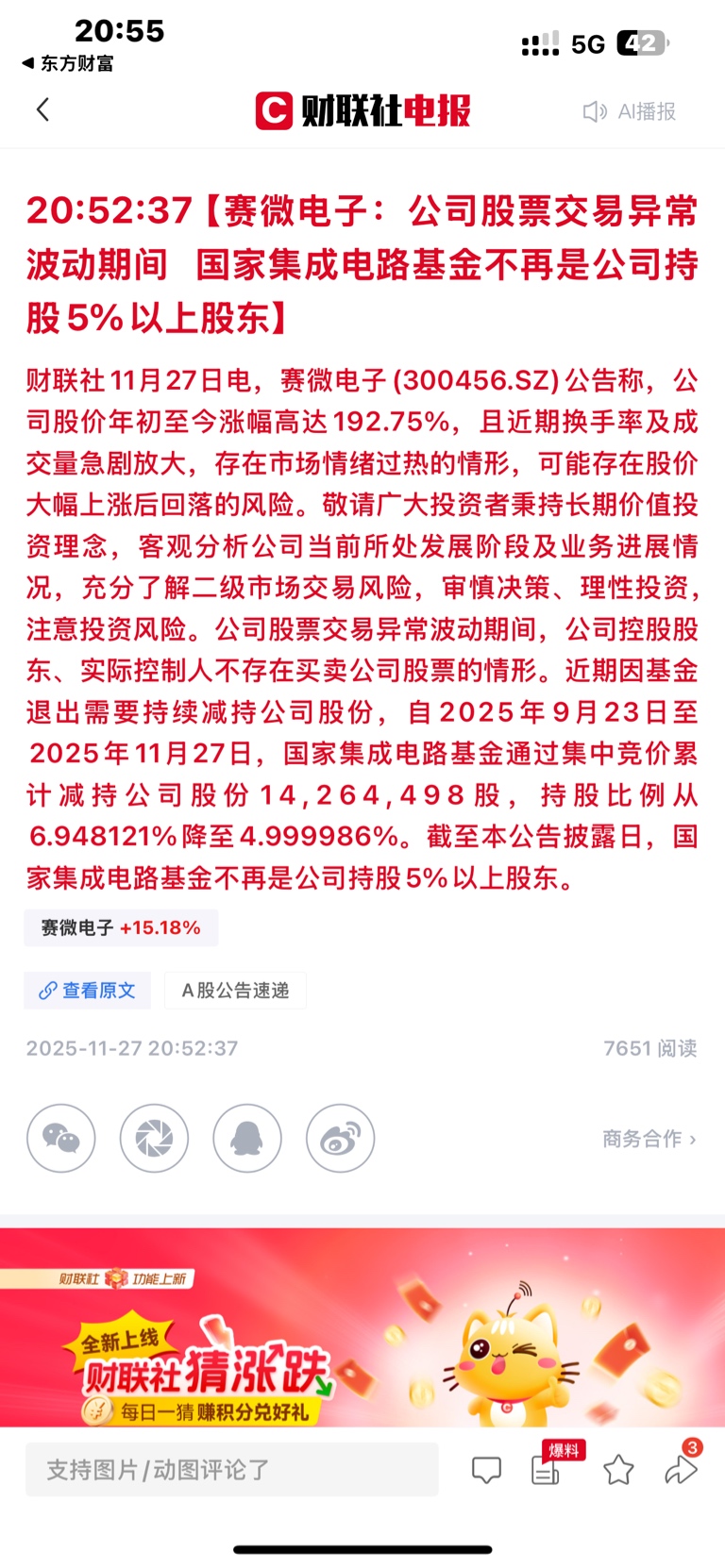 郑重声明:用户在财富号/股吧/博客等社区发表的所有信息(包括但不限于文字、视频、音频、数据及图表)仅代表个人观点,与本网站立场无关,不对您构成任何投资建议,据此操作风险自担。请勿相信代客理财、免费荐股和炒股培训等宣传内容,远离非法证券活动。请勿添加发言用户的手机号码、公众号、微博、微信及QQ等信息,谨防上当受骗!