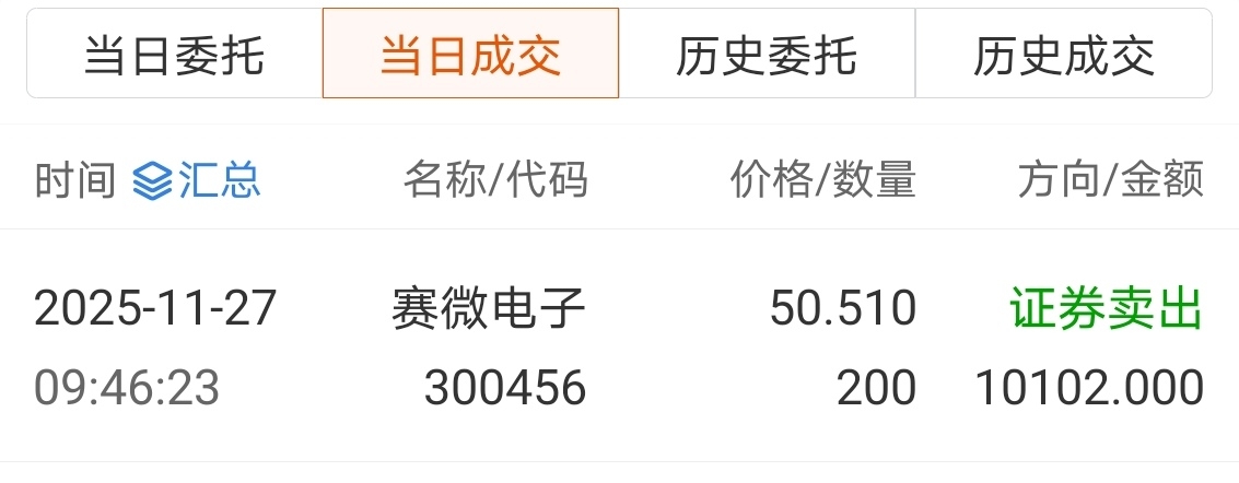 2025-11-27选择在20CM涨停板价格50.51元卖出。