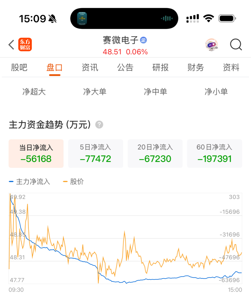 $赛微电子(SZ300456)$ 主力今天流出5.61亿