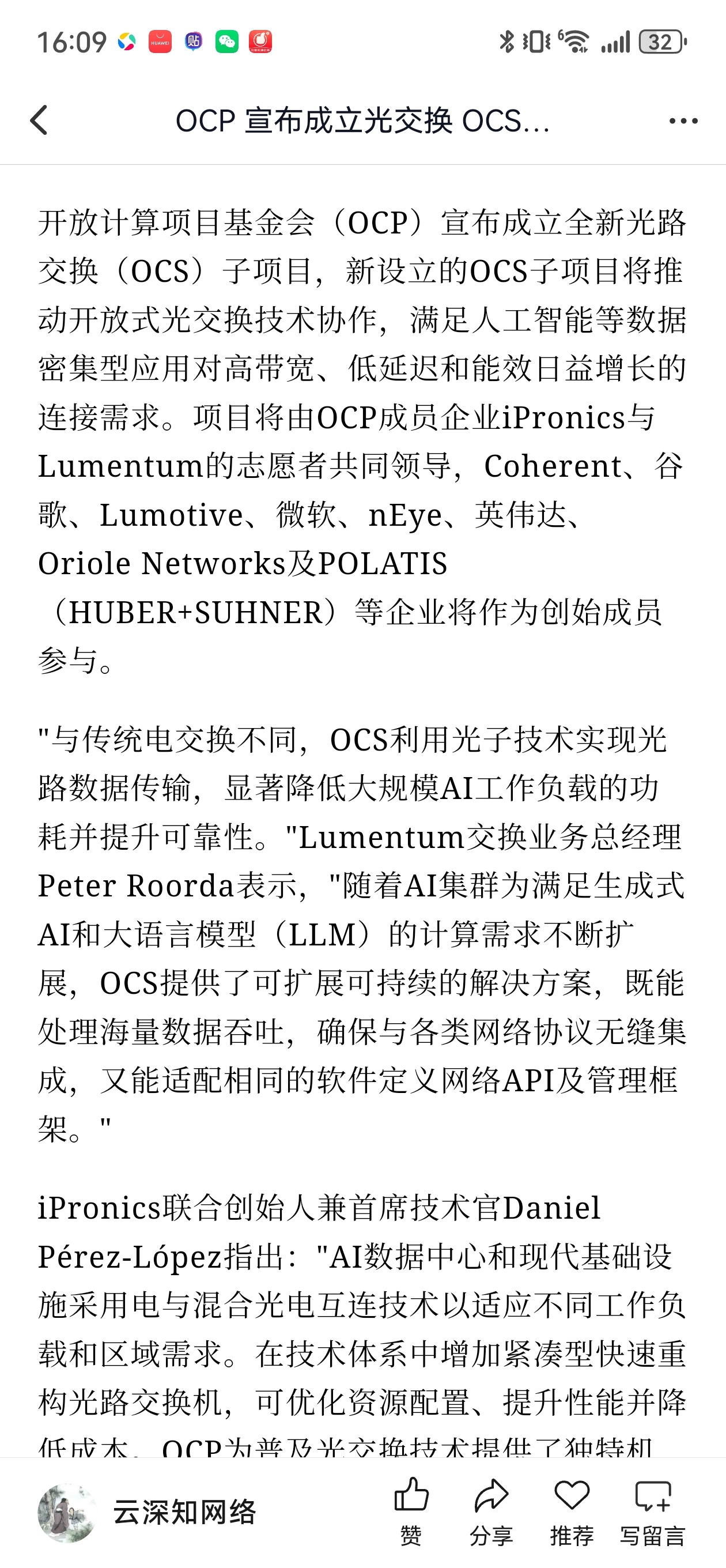 $赛微电子(SZ300456)$ 谁说OCS将来只是谷歌TPU一家使用 兄弟们看看这是什么?OCS的增量市场,会远远超出大家的想象!
