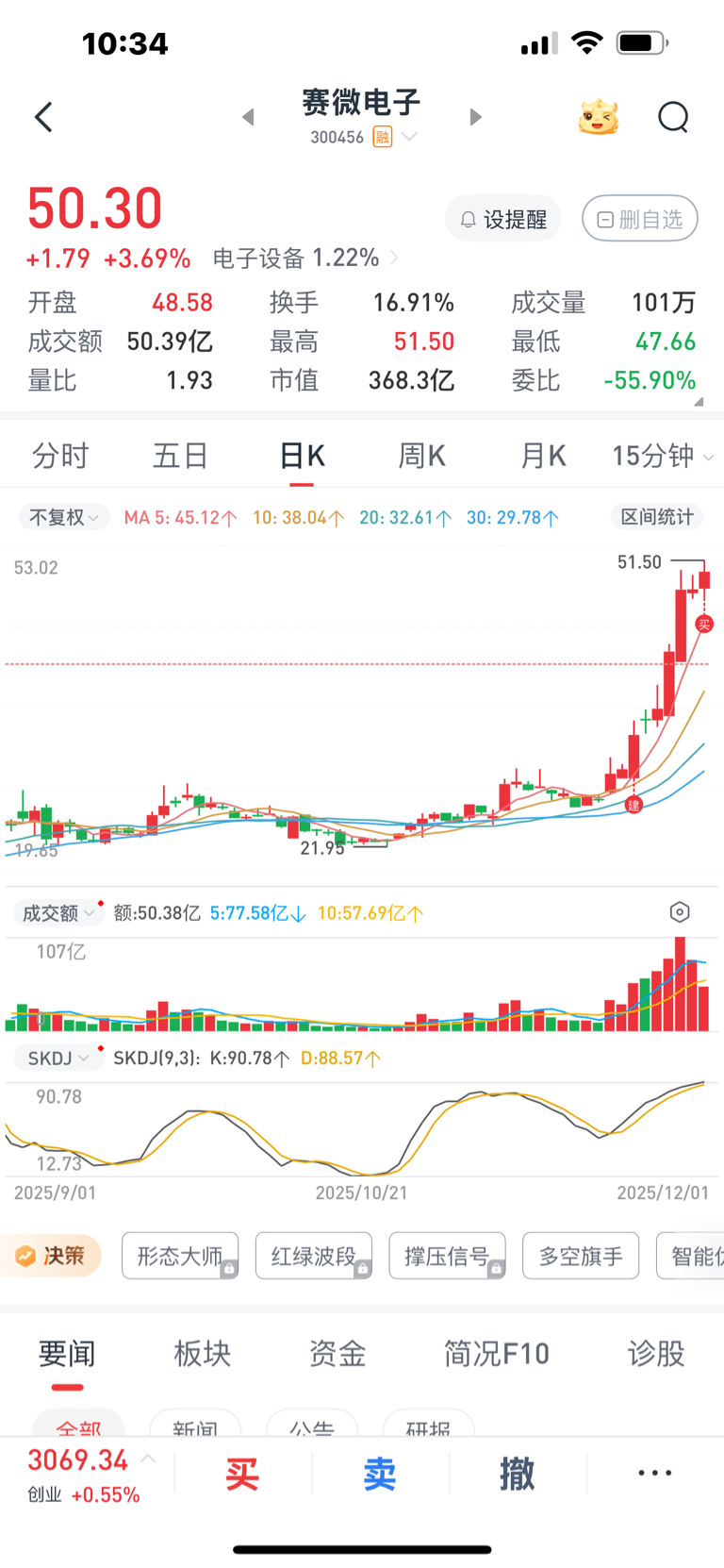 $赛微电子(SZ300456)$ 今天低点明天开盘五日线就碰到了,说明调整己到位,开启本周50%涨幅的新进程。