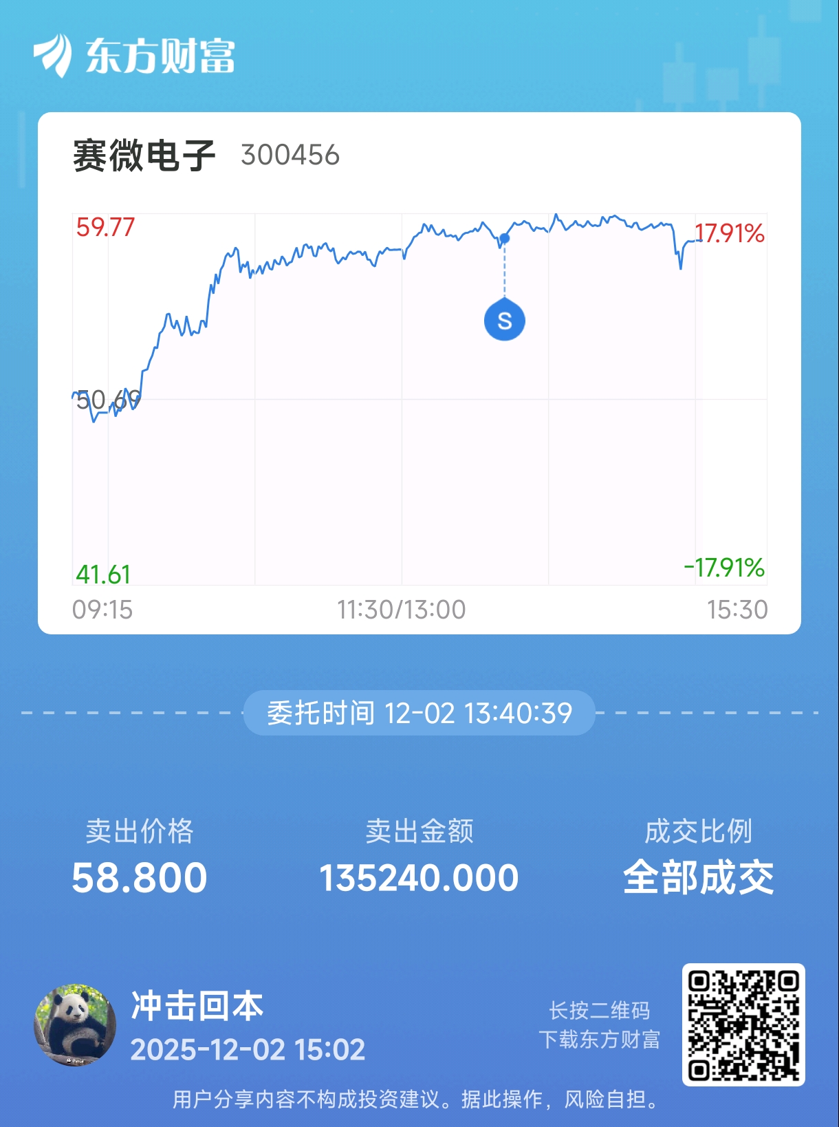 $赛微电子(SZ300456)$ 下午卖了半仓,明天继续观察。另外看我ID,希望这个股在过年前能帮我改名