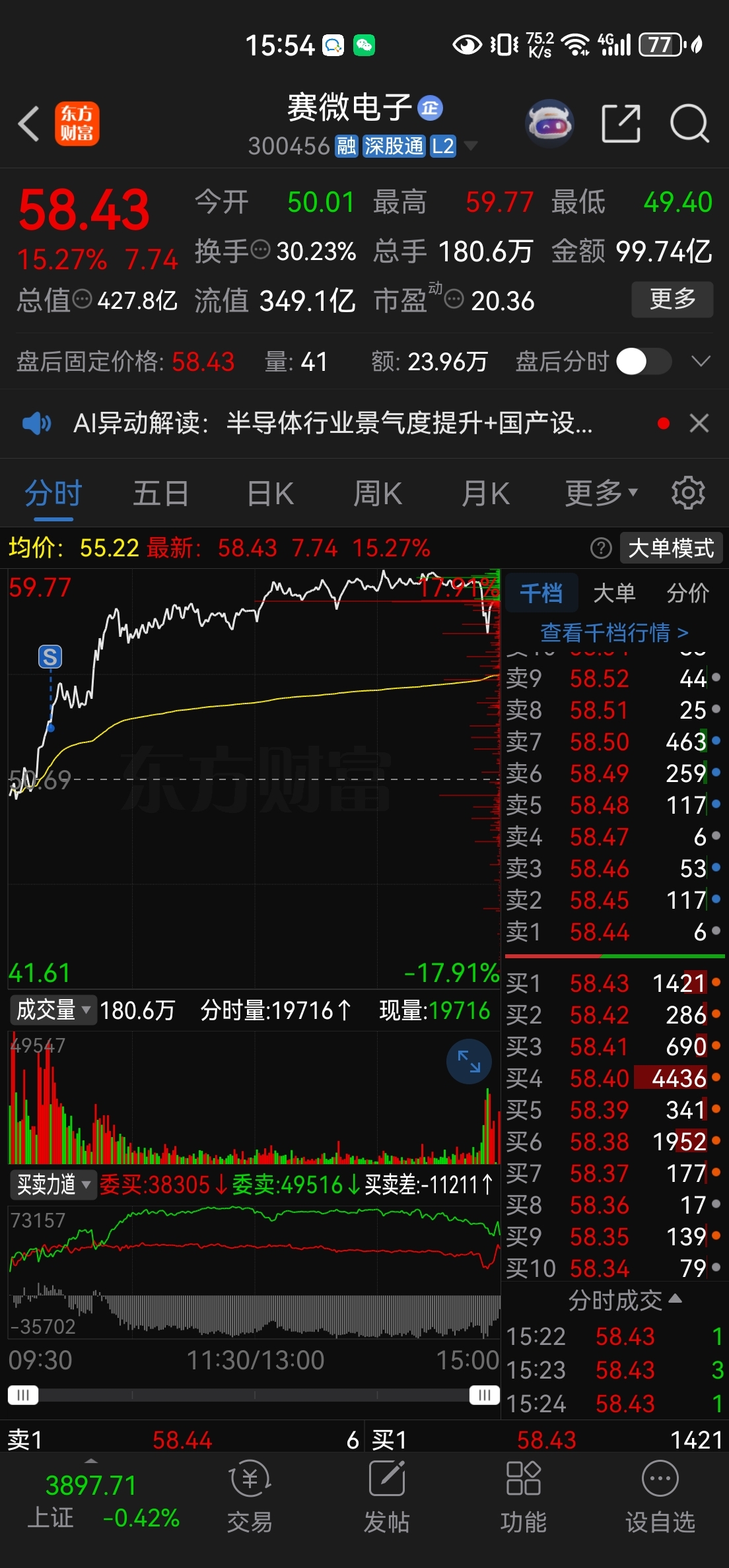 $赛微电子(SZ300456)$ 以为会监管,早早卖了想做T。给自己长长记性,优质股根本无惧监管,就算停牌,放出来还是继续高歌猛进,我忘记了买赛微电子的初心,就是赛维在低位,逻辑硬,这还怕监管?今天卖飞了赛维还能赚的更多完全是运气好,但是赛维的热度明显远高于菲菱科思,后市还是赛维的高度会更高。
