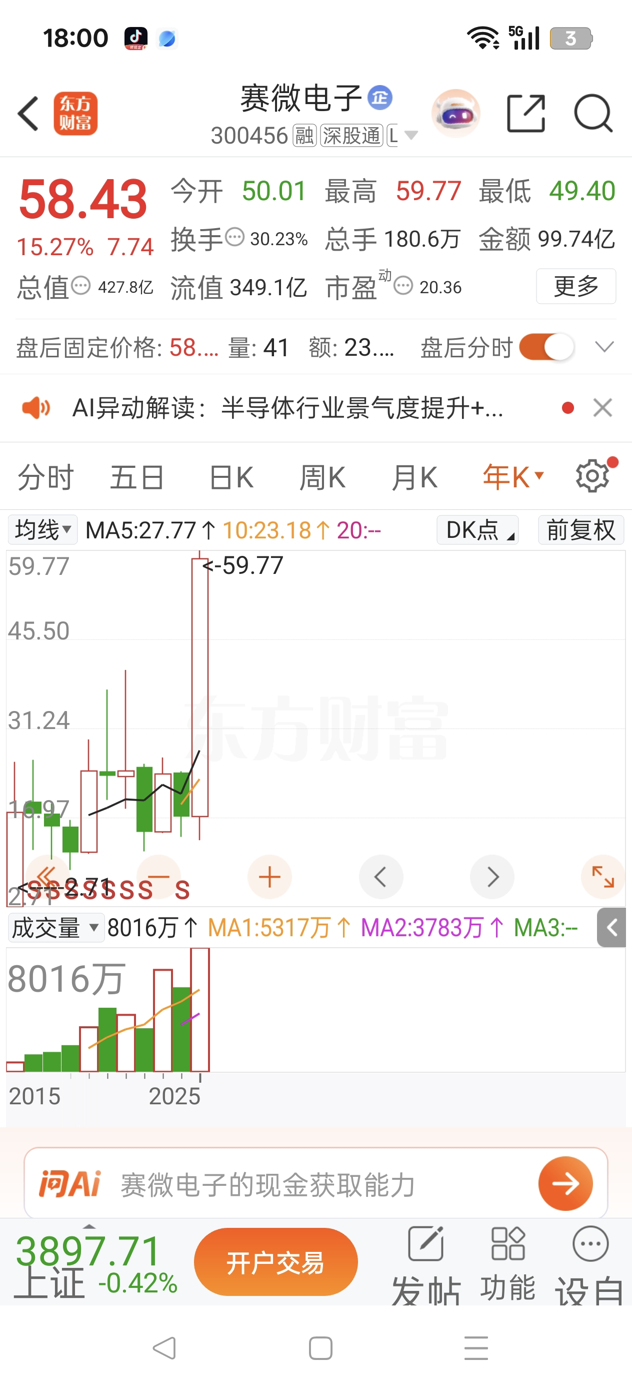 $赛微电子(SZ300456)$ 历史新高了