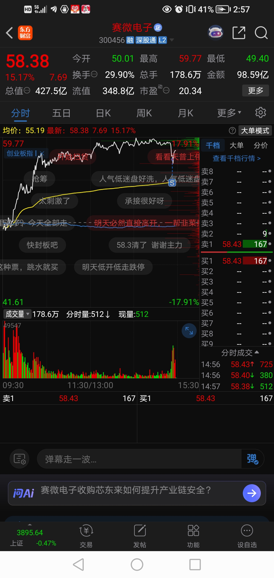 $赛微电子(SZ300456)$ 明天必定低开低走。我是清仓了,你们小心阿