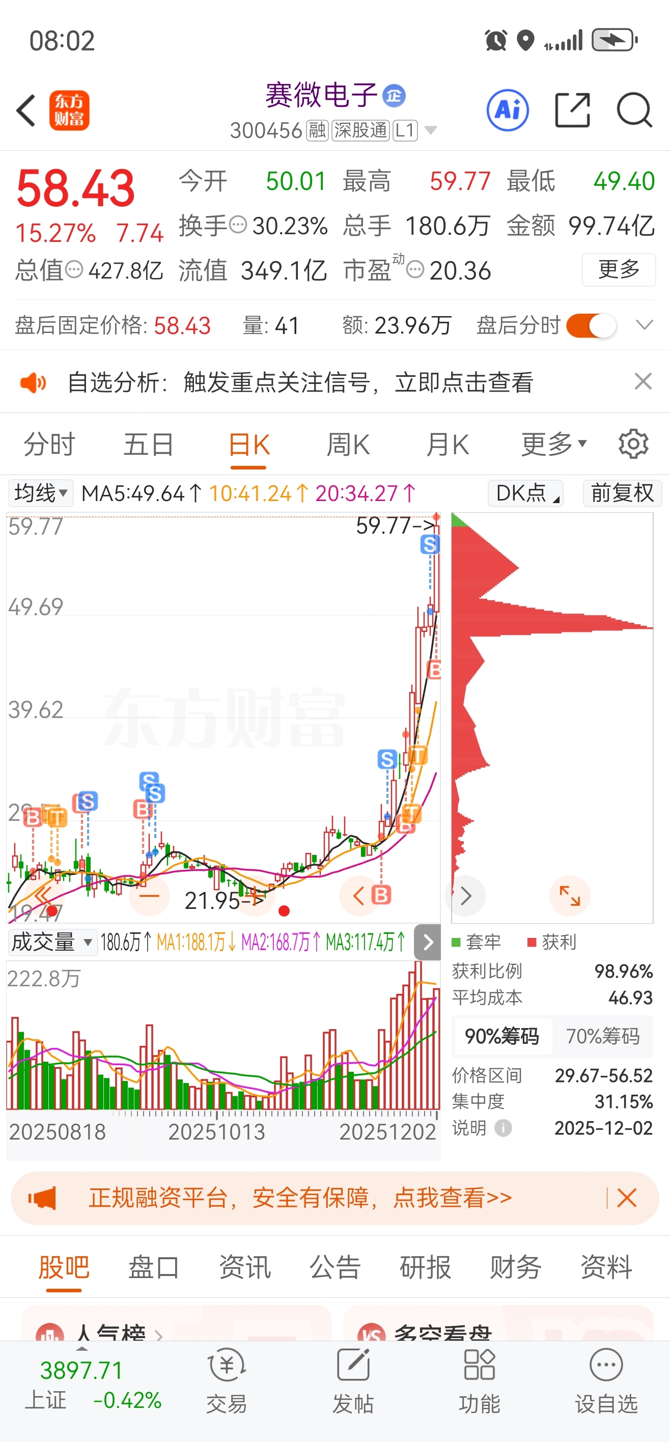 $赛微电子(SZ300456)$ 龙头真的不要轻易下车,T来T去成本更高。