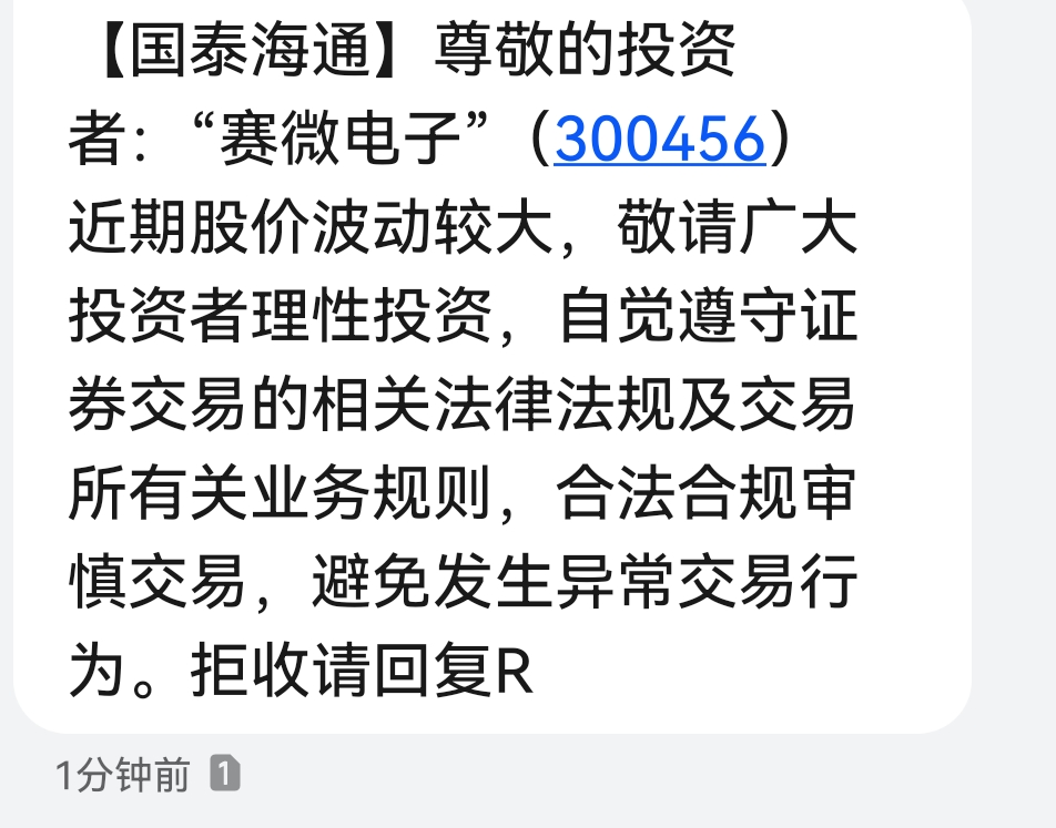 $赛微电子(SZ300456)$ 证券公司居然发短信提示!