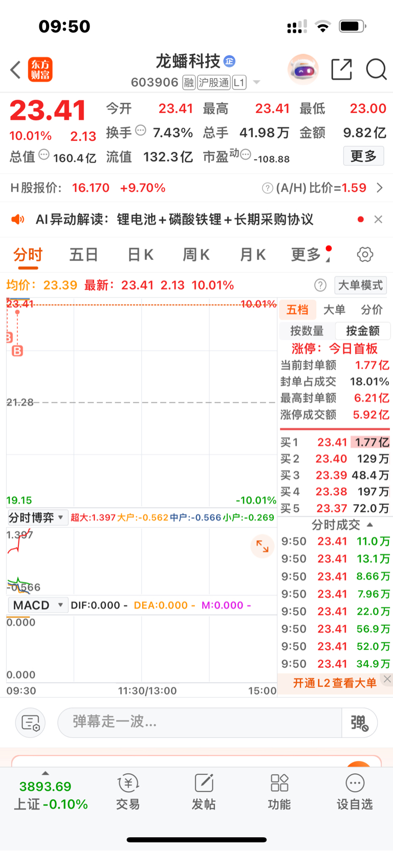 家人们先抄底,我老人家先走了!过去隔离龙蟠科技家吃几个涨停板先