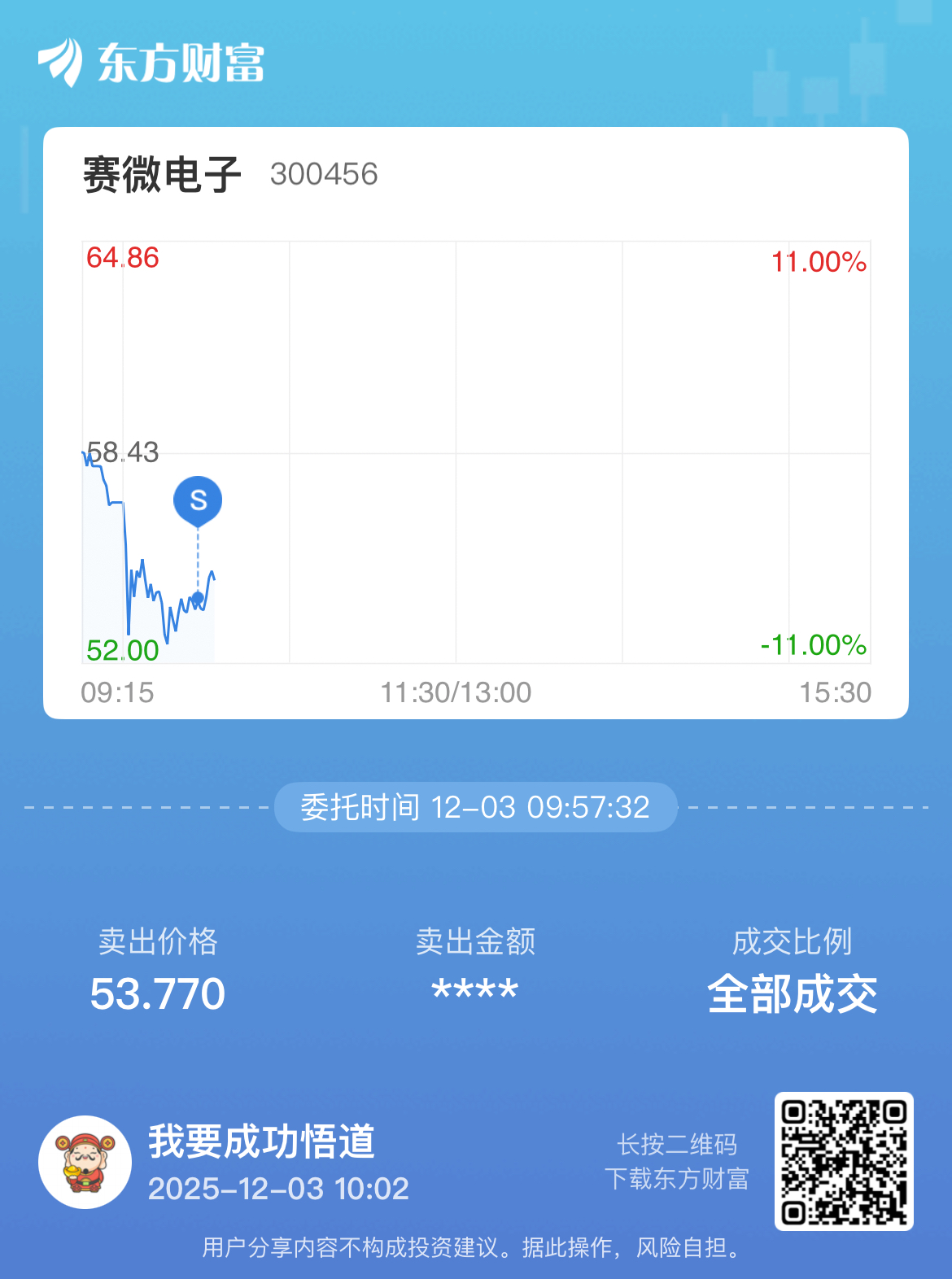 $赛微电子(SZ300456)$ 本来是要加仓的,买点成卖了,直接清仓了