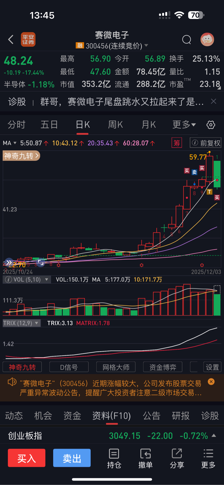 $赛微电子(SZ300456)$ 成本43要割吗好慌