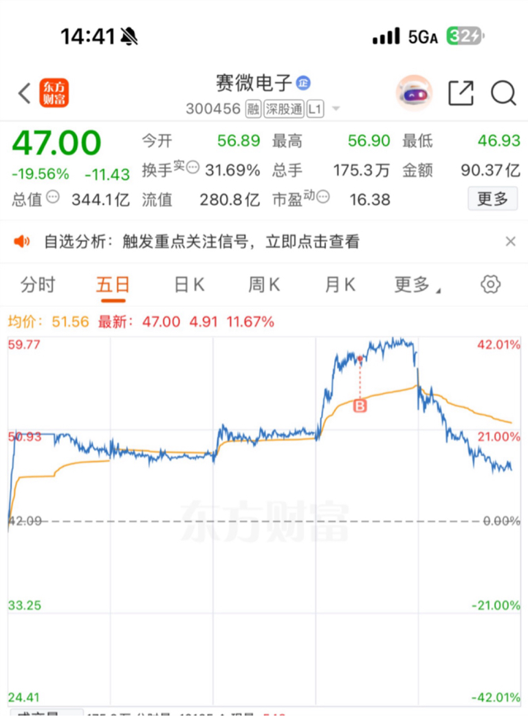 $赛微电子(SZ300456)$ 有谁和我一样高位买的吗,我融资账户,一天近乎腰斩