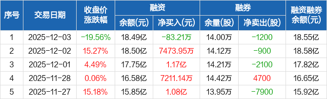 赛微电子:融资净偿还83.21万元,融资余额18.49亿元(12-03)
