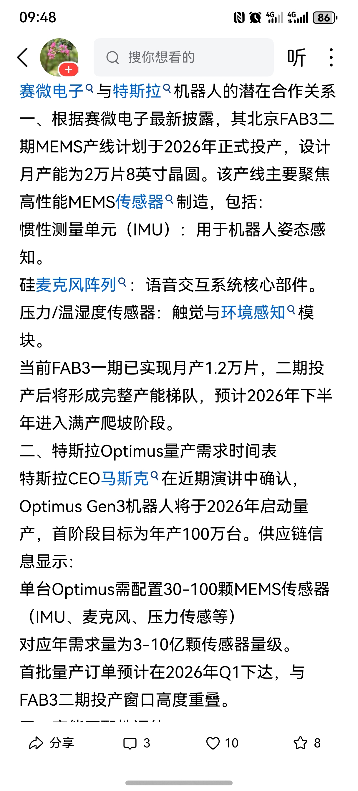 $赛微电子(SZ300456)$ 赛微想想布局长远,后续空间大,也许现在看到的是山顶,半年后来看,这是山脚下。人形机器人离不开mems的。