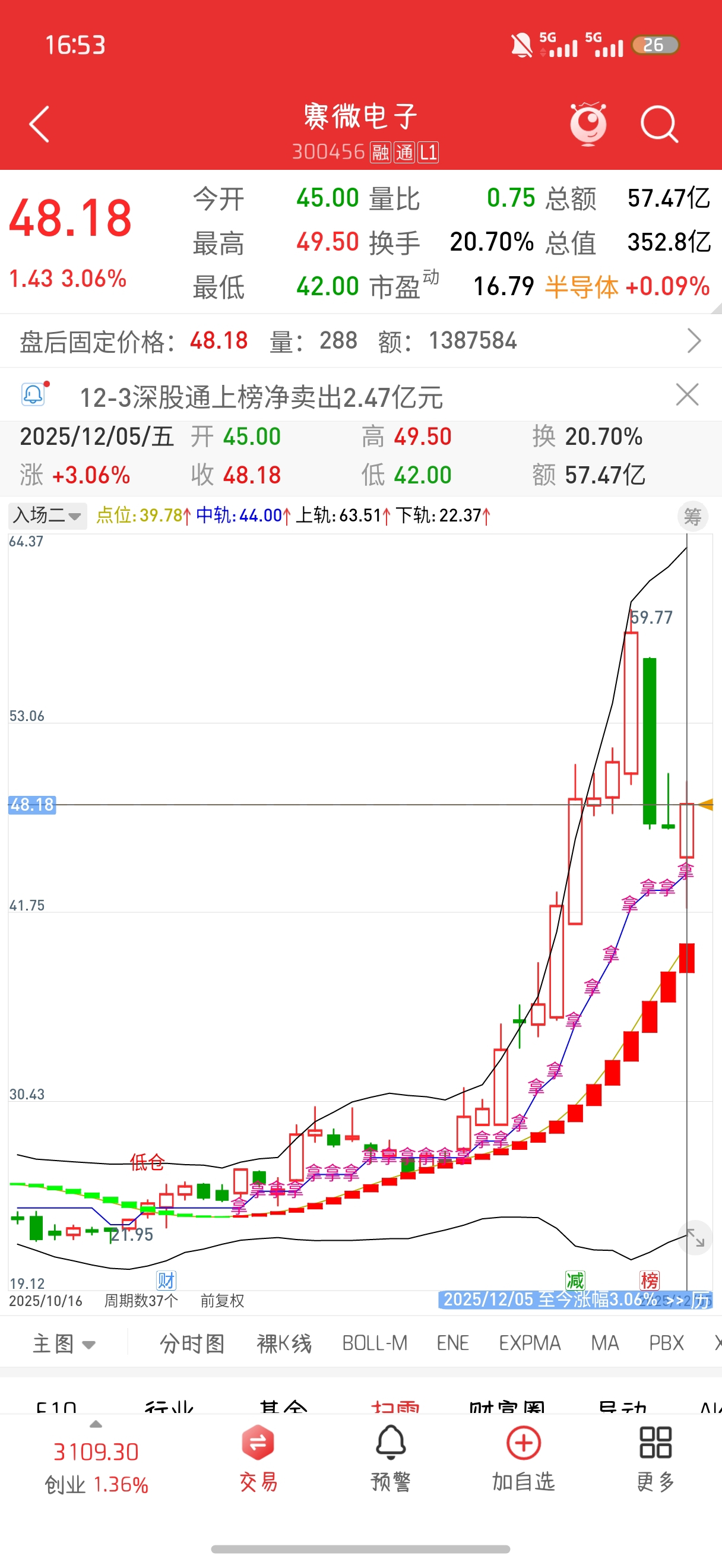 $赛微电子(SZ300456)$ 这个走势不意外吧?????之前有好多天价格触碰到了蓝色中轨,,,,多好的机会
