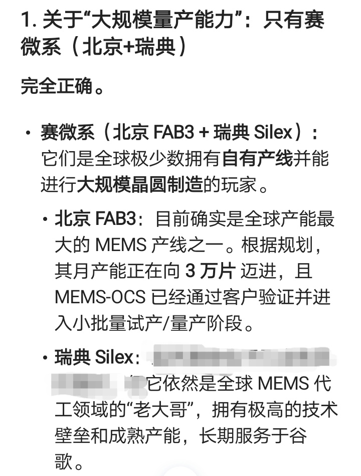 其实,目前,在全球mems-ocs芯片领域,赛微电子系(包含北京厂FAB3和瑞典