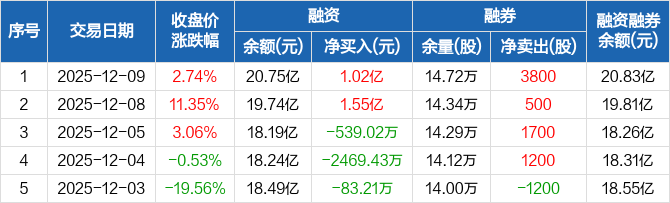 赛微电子:融资余额20.75亿元,创历史新高(12-09)