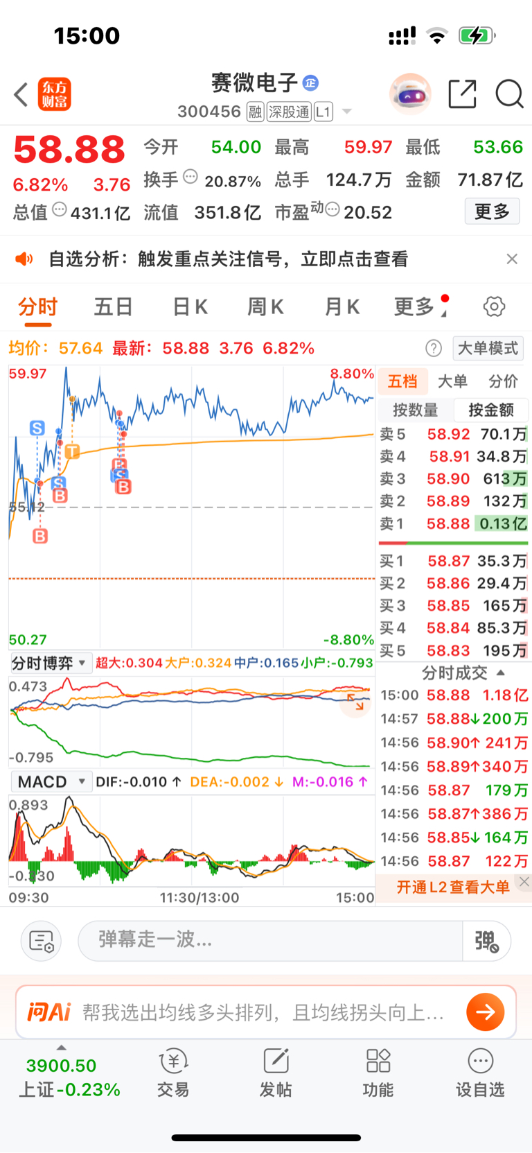 $赛微电子(SZ300456)$ 果然给我猜中了收盘价