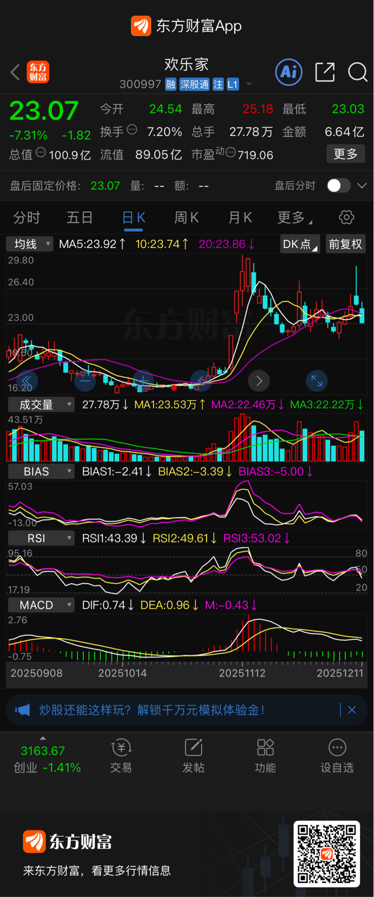 ,问明天是不是像$欢乐家(SZ300997)$ 昨天到今天的走势