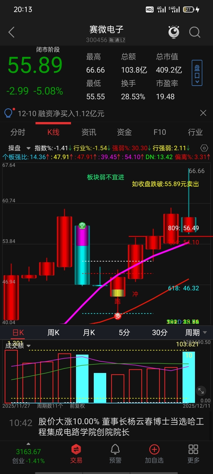 $赛微电子(SZ300456)$ 指数跌+行业跌+板块弱+个股强不宜进