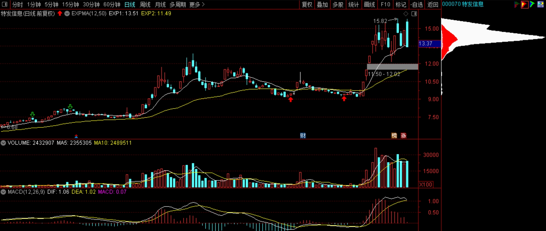 特发信息,今天跌停,最近高位一直大幅换手,股价上窜下跳很活跃,有资金在运作,今天尾盘跌停买入!只要成交量维持活跃,该股就不会轻易结束,明天如果再负5以下,可以考虑加仓,博弈反弹!