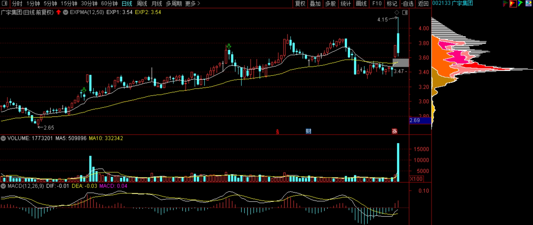 广宇集团,低价地产股,今天涨停炸板埋人,成交量放大,股价被激活。该股股价跌,又是地产反弹龙头,今天尾盘建仓,博弈反弹!