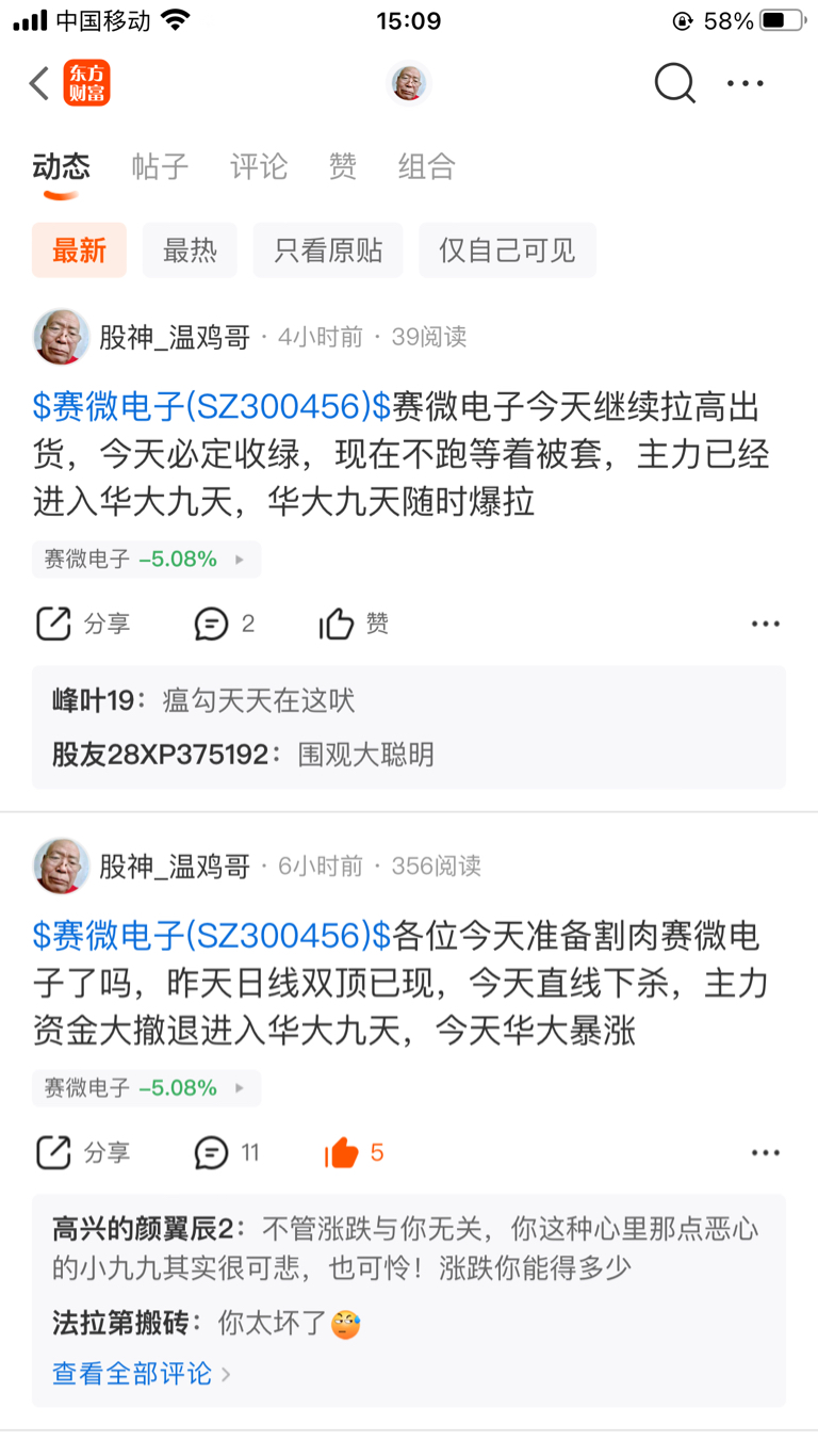 温馨提示: 1.根据《证券法》规定,禁止编造、传播虚假信息或者误导性信息,扰乱证券市场;2.用户在本社区发表的所有资料、言论等仅代表个人观点,与本网站立场无关,不对您构成任何投资建议。用户应基于自己的独立判断,自行决定证券投资并承担相应风险。《东方财富社区管理规定》