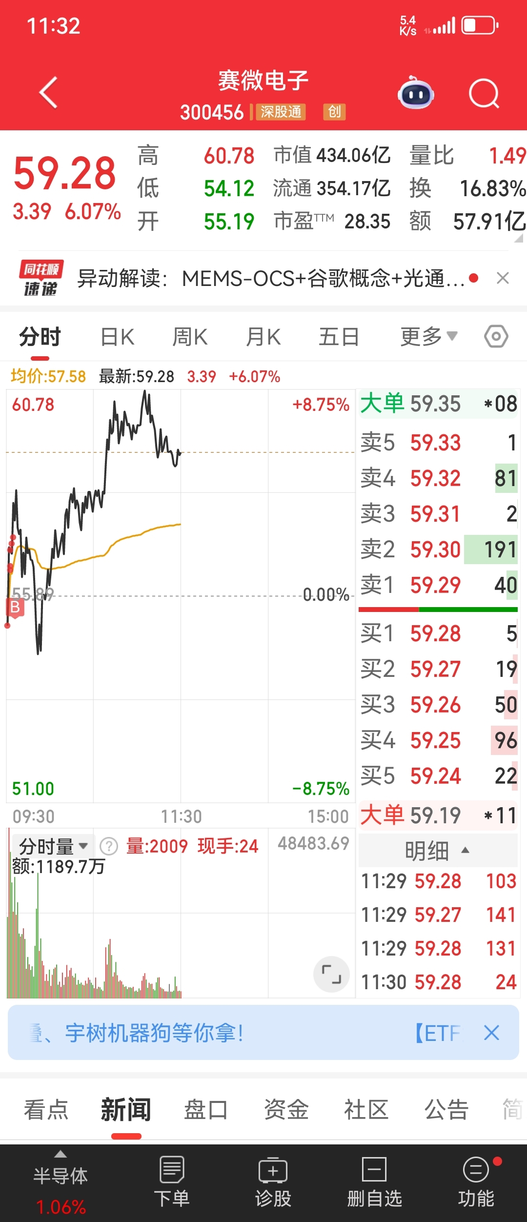 真是我的财神爷啊这个月一直抱着赛微昨天十个点卖今天接回来这个股还没做过倒T