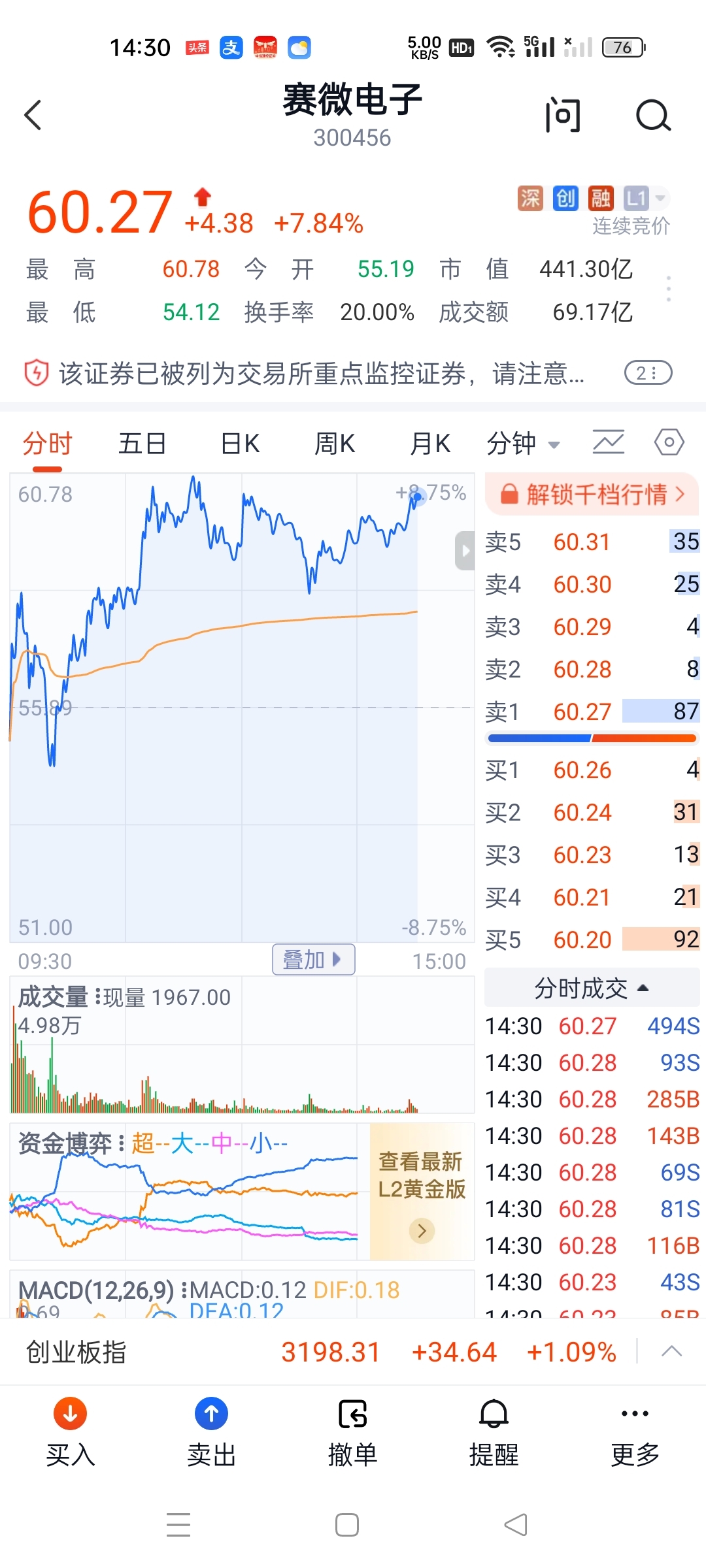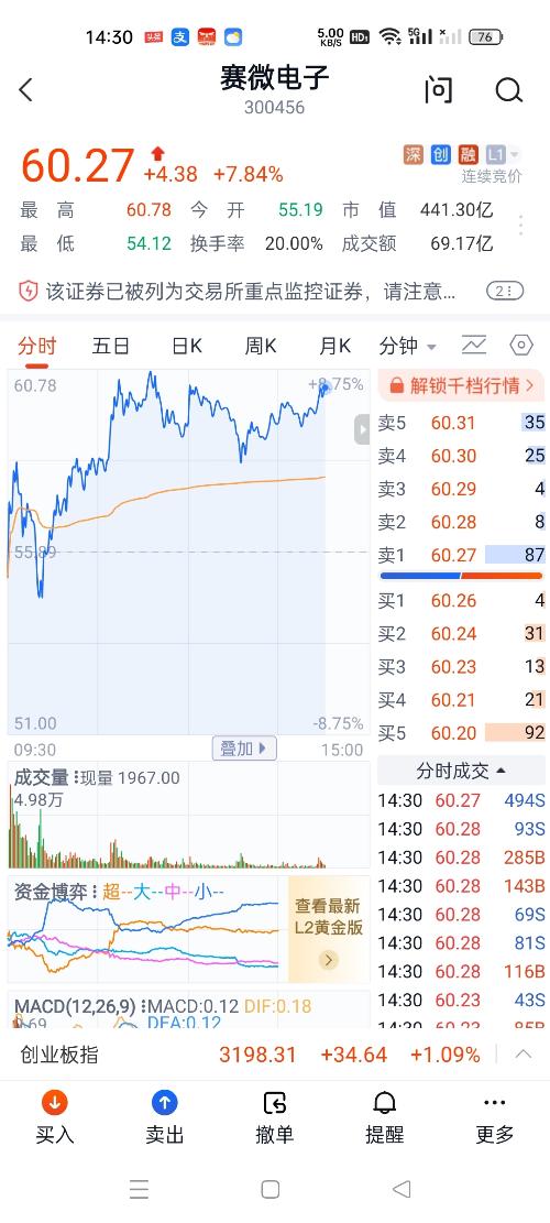 上午低开-5%,拉红8%,上午收盘macd入水,但是股价并没有下来多少,仍然很强势,承接有力。如果今天收盘能站在60.0元上,下周必定还会出现一个20%的立柱,以确立后续趋势方向。收盘稳得住58.0元,中强。收盘站得住60.0元,超强。看主力怎么做了