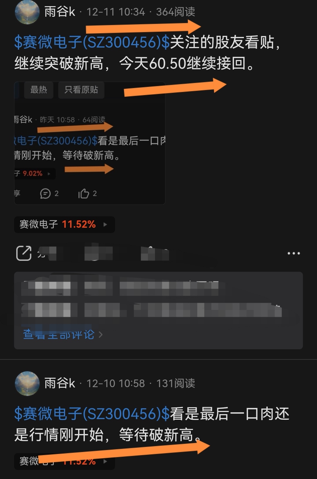 $赛微电子(SZ300456)$ 关注的股友看贴,都是提前发的,注意时间,恭喜关注的股友,周五早上加仓,中午T,继续肉,第二次进从发贴到现在做T18+,第一次进做T最高才达到40点。