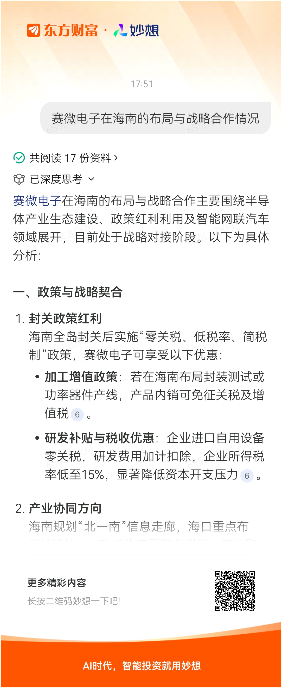 妙想一下:赛微电子在海南的布局与战略合作情况