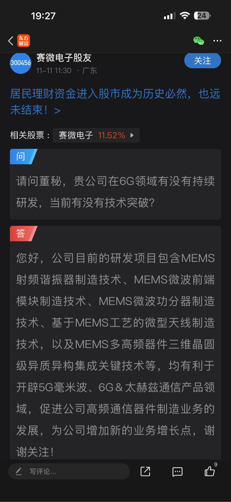 $赛微电子(SZ300456)$ 6G、太赫兹技术,是未来通信发展,特别是太空通信的关键,赛微电子继OCS概念之后,又一次踩中重大概念。