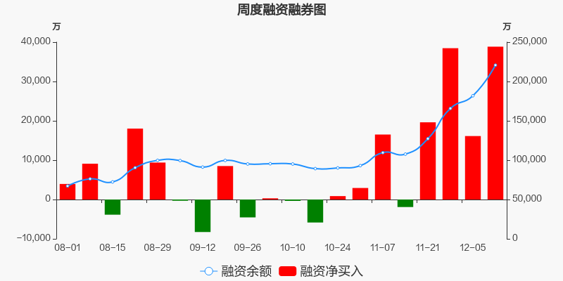 赛微电子本周(2025/12/08-2025/12/12)累计涨幅达29.37%,截至12月12日最新股价报收62.33元。从增量上来看,12月8日至12月11日融资买入交易规模36.57亿元,融资偿还规模32.69亿元,期内融资净买入3.89亿元。从存量上来看,截止12月14日,赛微电子融资融券余额22.16亿元,其中融资余额规模22.07亿元,融券余额规模823.26万元。