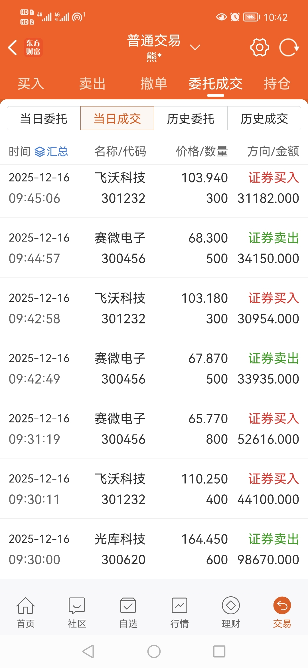 $赛微电子(SZ300456)$ 今天第一时间卖出广库科技光库科技,太正确了。后来又卖出一半留一半赛微电子,赌一把下午有冲高动作。今天上午的操作水平,各位打几分?