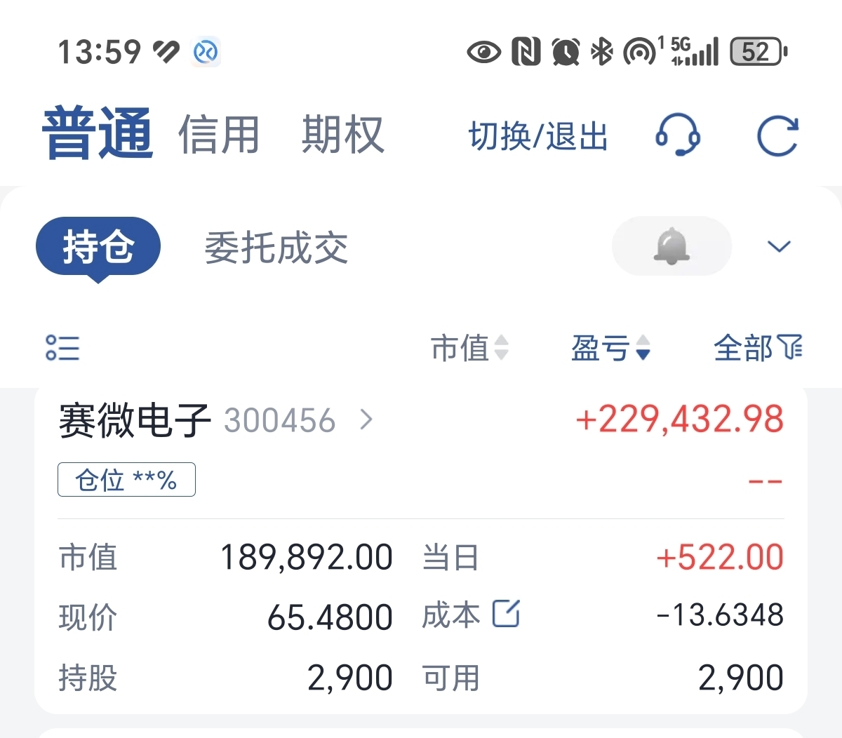 $赛微电子(SZ300456)$ 我的成本是负的。