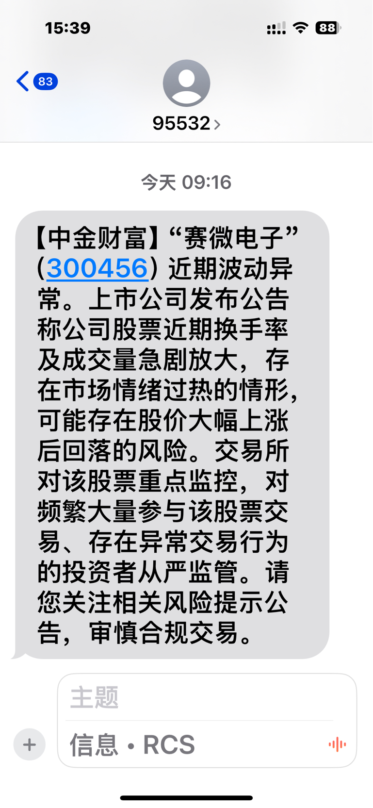 $赛微电子(SZ300456)$ 还是被监控了、早上发来信息,算了,不玩了,连续被监控,哪天风吹草动,里面资金出逃完蛋