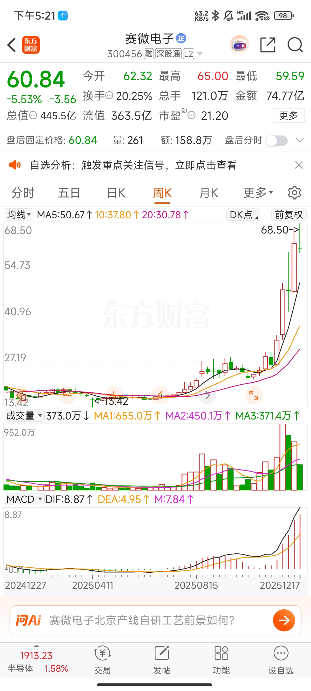 $赛微电子(SZ300456)$ 预计下周还有个30点涨幅,80附近