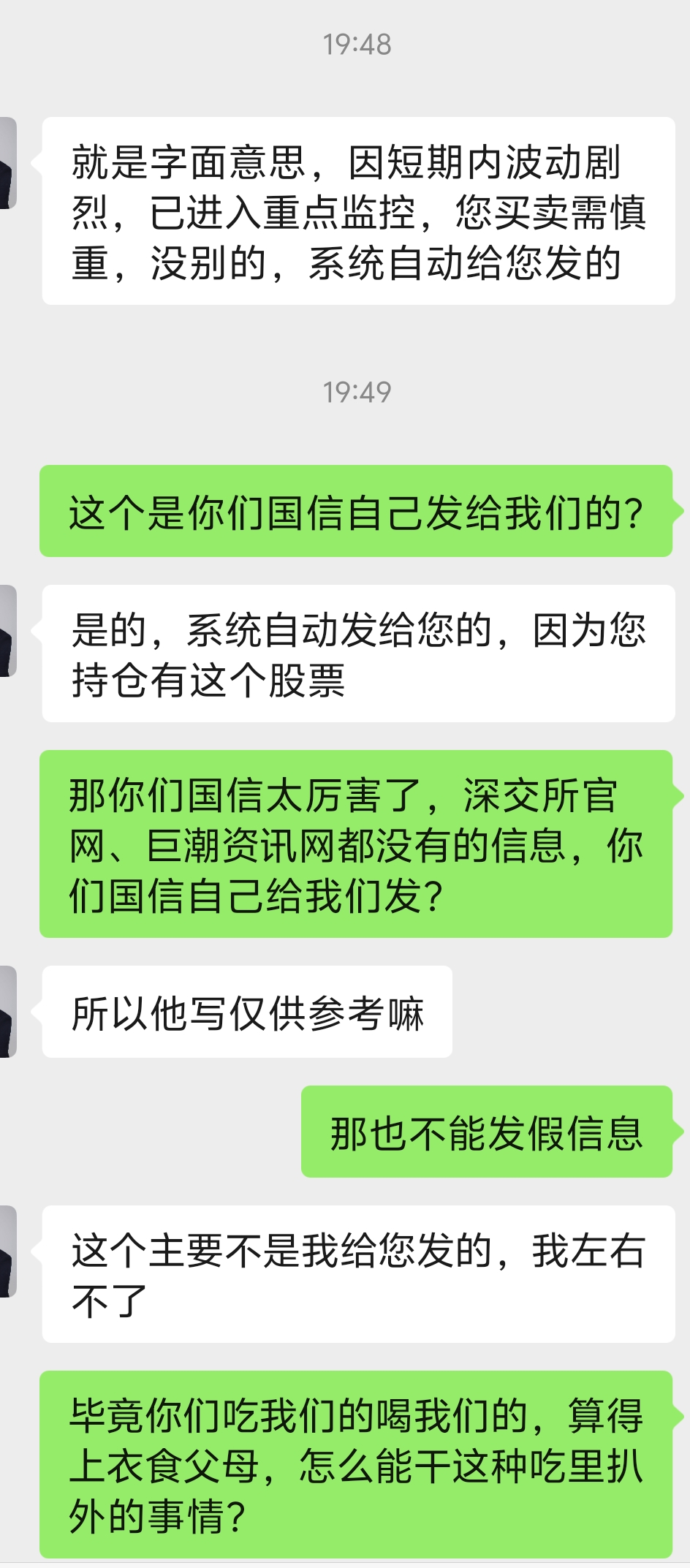 乱发虚假信息,我已经联系国信客户经理要求赔偿损失了。