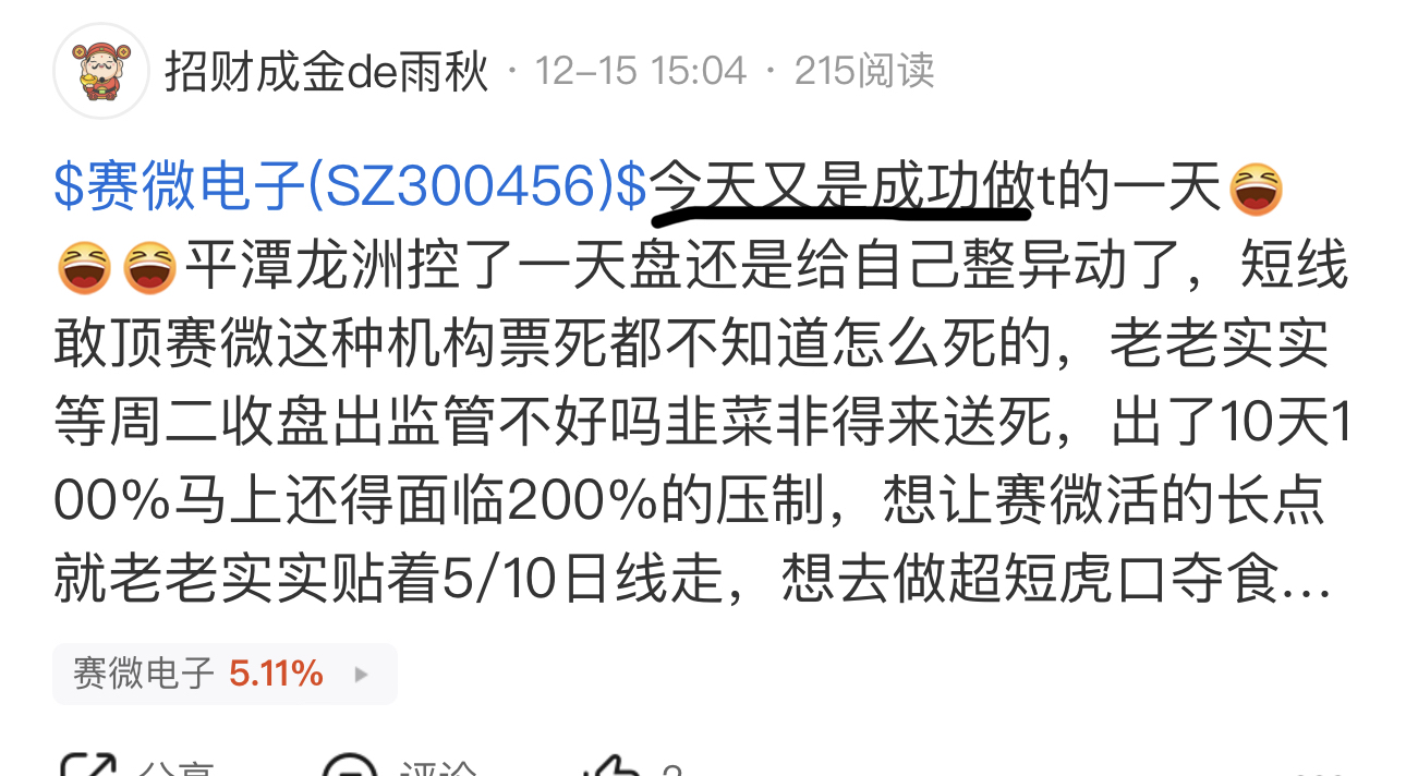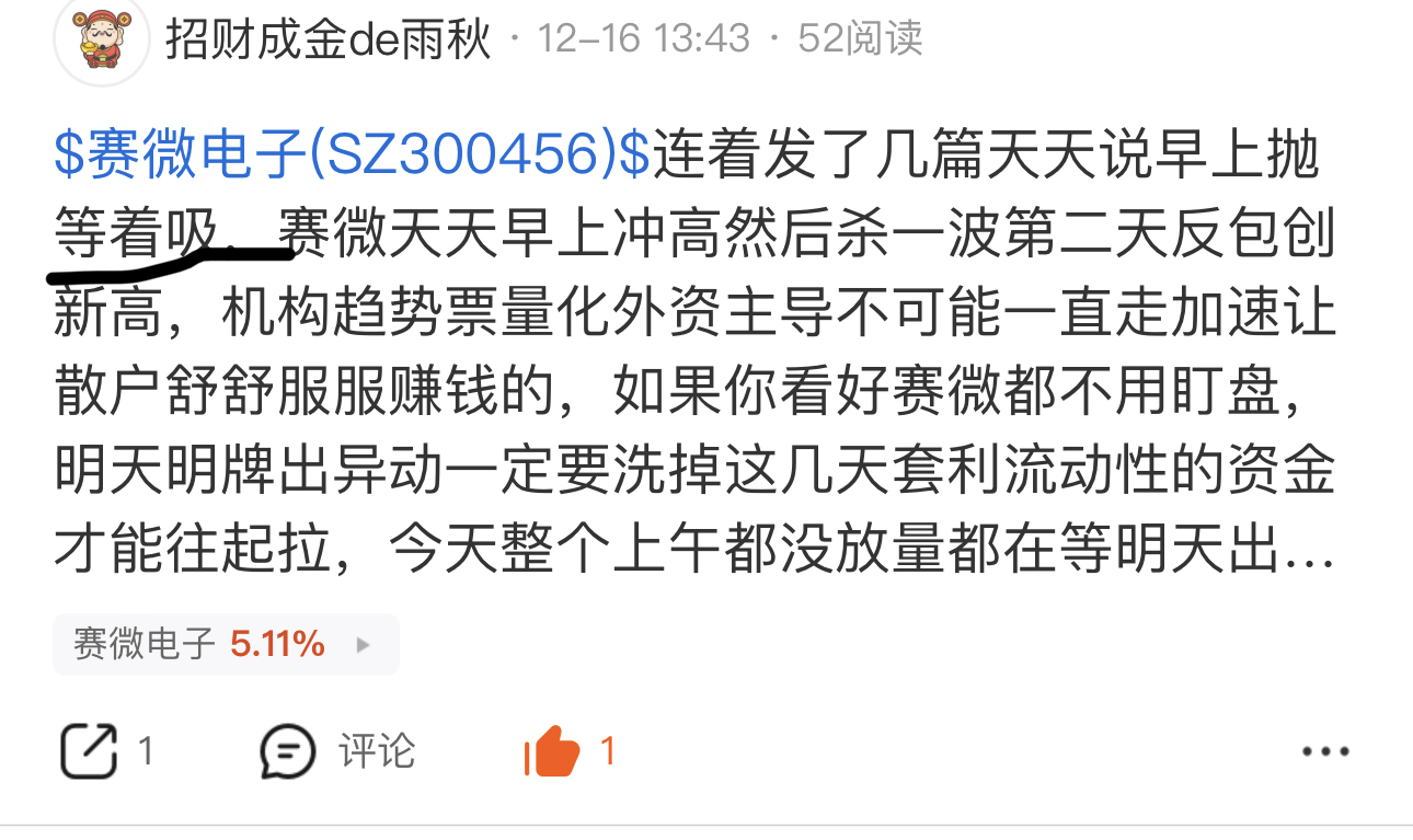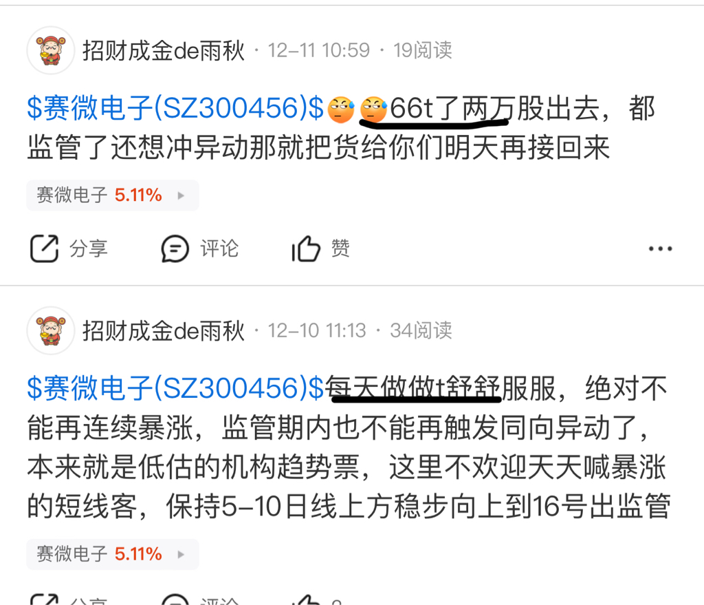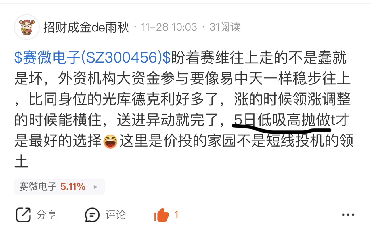 $赛微电子(SZ300456)$ 从11月底就让t别追高有几个能看到知行合一的