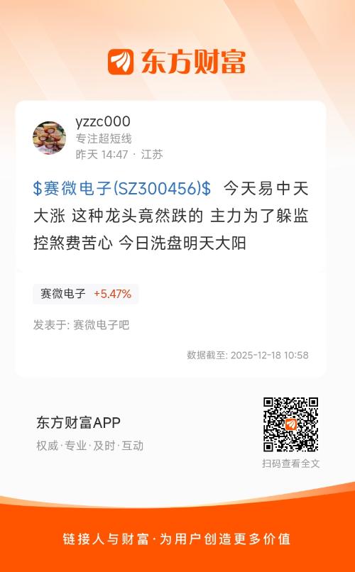 温馨提示: 1.根据《证券法》规定,禁止编造、传播虚假信息或者误导性信息,扰乱证券市场;2.用户在本社区发表的所有资料、言论等仅代表个人观点,与本网站立场无关,不对您构成任何投资建议。用户应基于自己的独立判断,自行决定证券投资并承担相应风险。《东方财富社区管理规定》