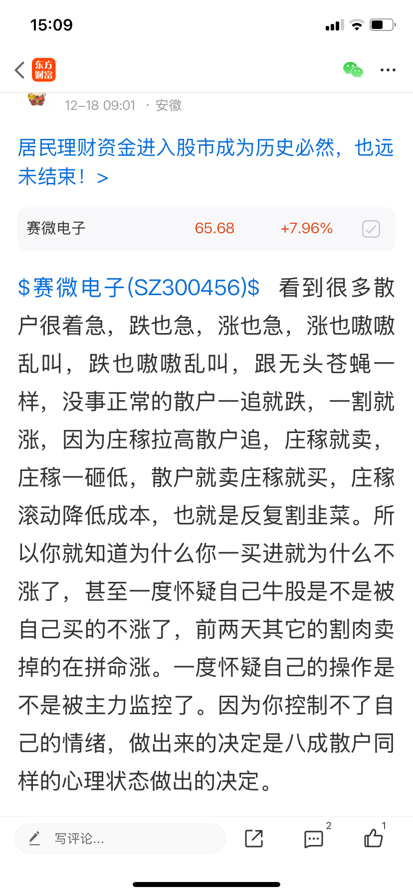 $赛微电子(SZ300456)$ 今天下跌的原因找到了是昨天拉高的时候散户又追涨了,现在跌就是让他们割肉。追进来稍微有点毛利就截图得瑟,生怕全世界不知道一样到处炫耀