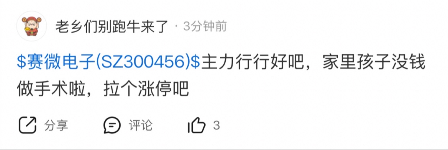 温馨提示: 1.根据《证券法》规定,禁止编造、传播虚假信息或者误导性信息,扰乱证券市场;2.用户在本社区发表的所有资料、言论等仅代表个人观点,与本网站立场无关,不对您构成任何投资建议。用户应基于自己的独立判断,自行决定证券投资并承担相应风险。《东方财富社区管理规定》
