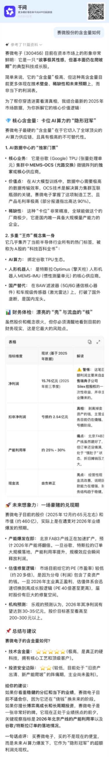 查千问:目前赛微的含金量回复,大家细品一下吧