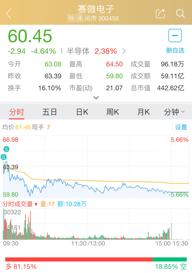 上周五赛微没有高开高走,不及预期。今卖出清仓。回调到42元边上再择机买。