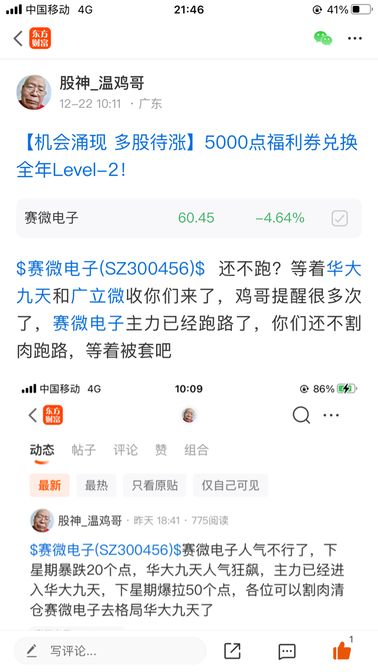 温馨提示: 1.根据《证券法》规定,禁止编造、传播虚假信息或者误导性信息,扰乱证券市场;2.用户在本社区发表的所有资料、言论等仅代表个人观点,与本网站立场无关,不对您构成任何投资建议。用户应基于自己的独立判断,自行决定证券投资并承担相应风险。《东方财富社区管理规定》