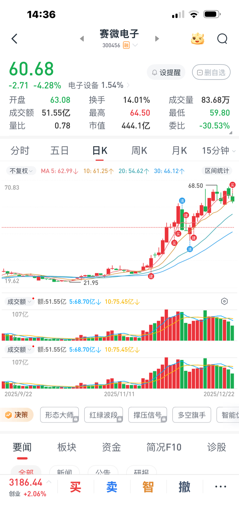 说说容易做起来难。既然看好赛微,就得用行动支持!周一加大投入,买了36手。还是那