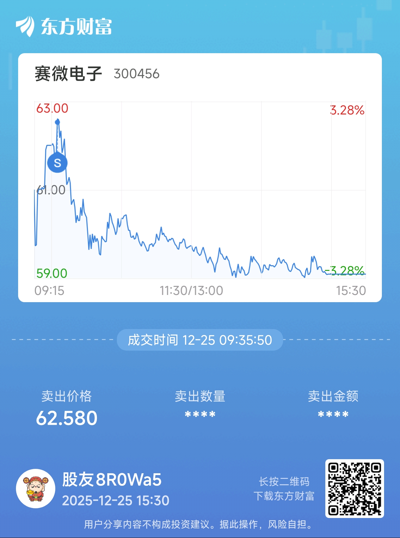 温馨提示: 1.根据《证券法》规定,禁止编造、传播虚假信息或者误导性信息,扰乱证券市场;2.用户在本社区发表的所有资料、言论等仅代表个人观点,与本网站立场无关,不对您构成任何投资建议。用户应基于自己的独立判断,自行决定证券投资并承担相应风险。《东方财富社区管理规定》