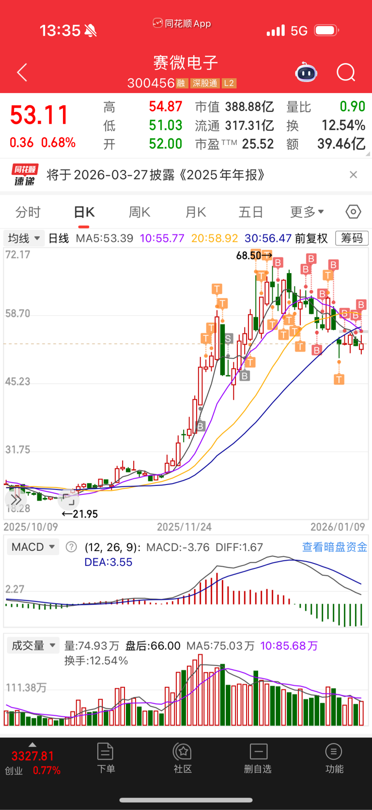 赛微电子感觉是换庄了,比之前的庄家更恶劣,我认为是冲着百元票去做结构, 底部按照52附近去构建的话, 26年翻倍价格在115以上 具体啥时候到也只是个猜测,个人意见勿喷