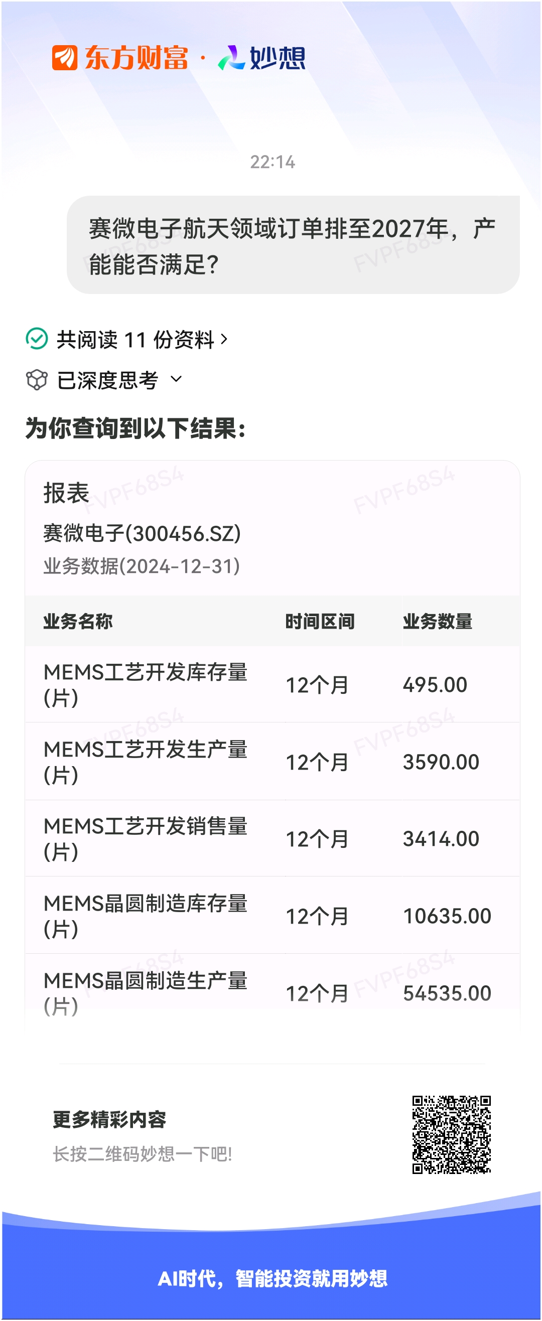 #@妙想,你怎么看?# 妙想一下:赛微电子航天领域订单排至2027年,产能能否满足?