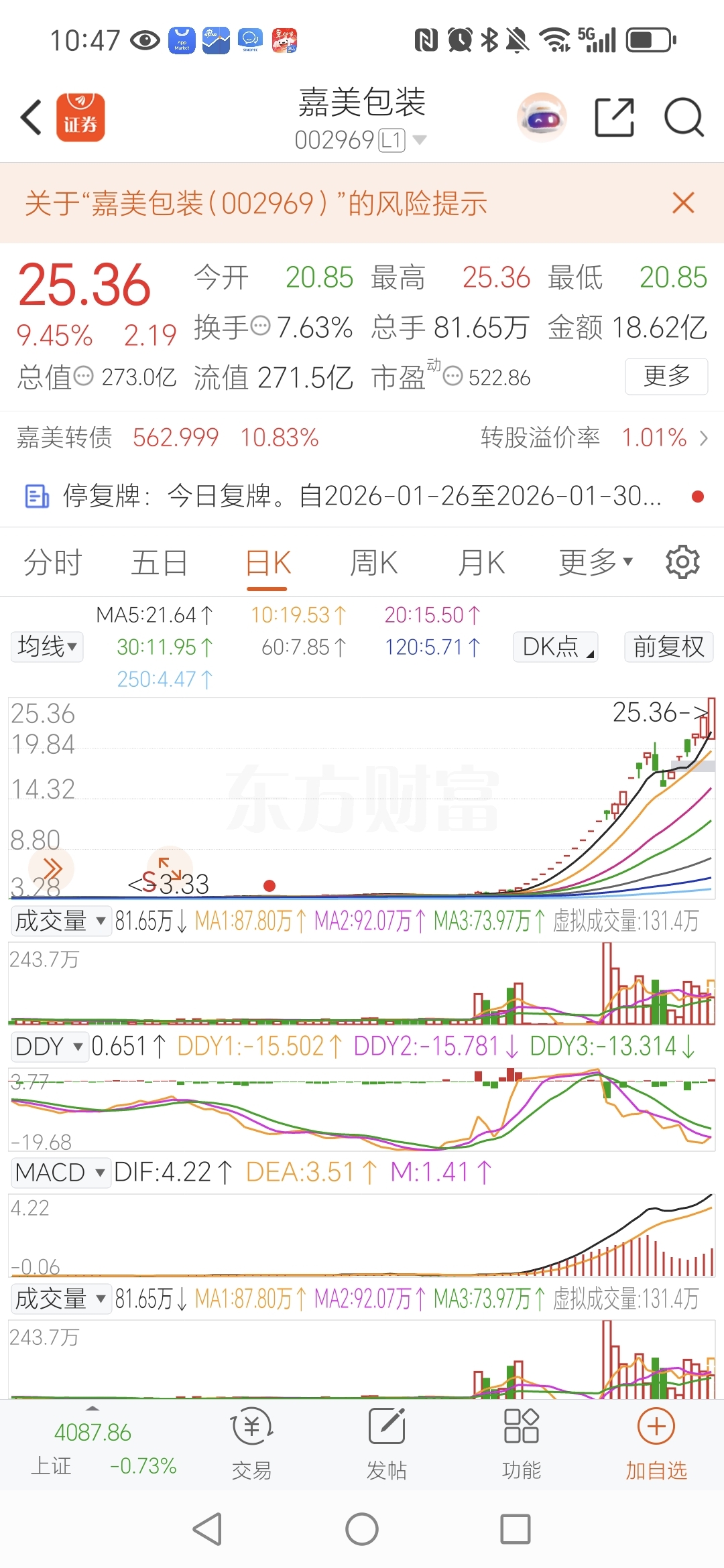 看看人家嘉美包装,一口气拉了多少倍。。。只是一个做印刷包装的,照样牛,就算停牌核