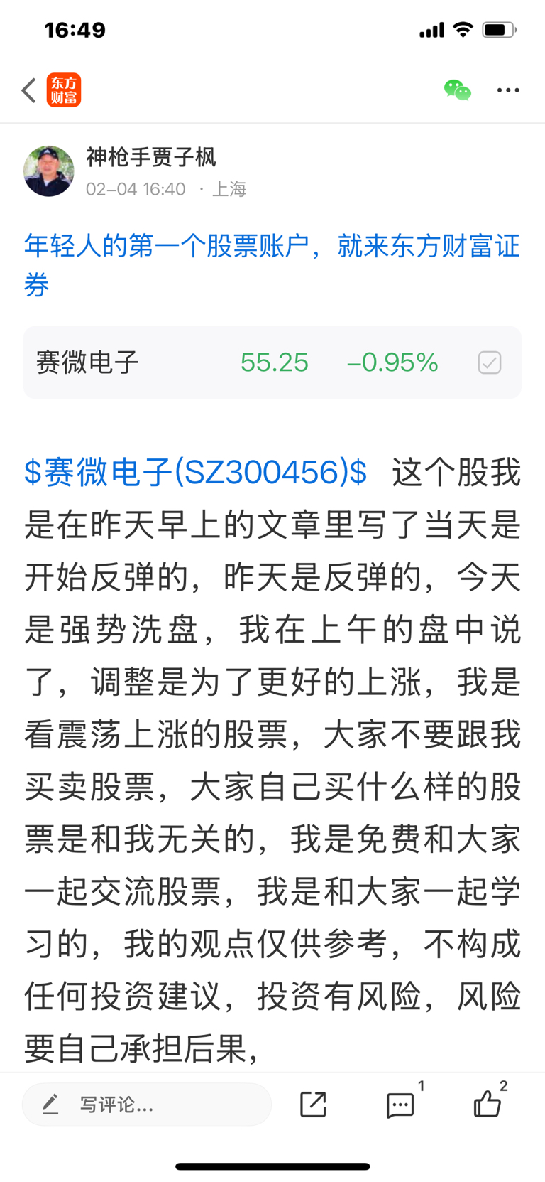 温馨提示: 1.根据《证券法》规定,禁止编造、传播虚假信息或者误导性信息,扰乱证券市场;2.用户在本社区发表的所有资料、言论等仅代表个人观点,与本网站立场无关,不对您构成任何投资建议。用户应基于自己的独立判断,自行决定证券投资并承担相应风险。《东方财富社区管理规定》